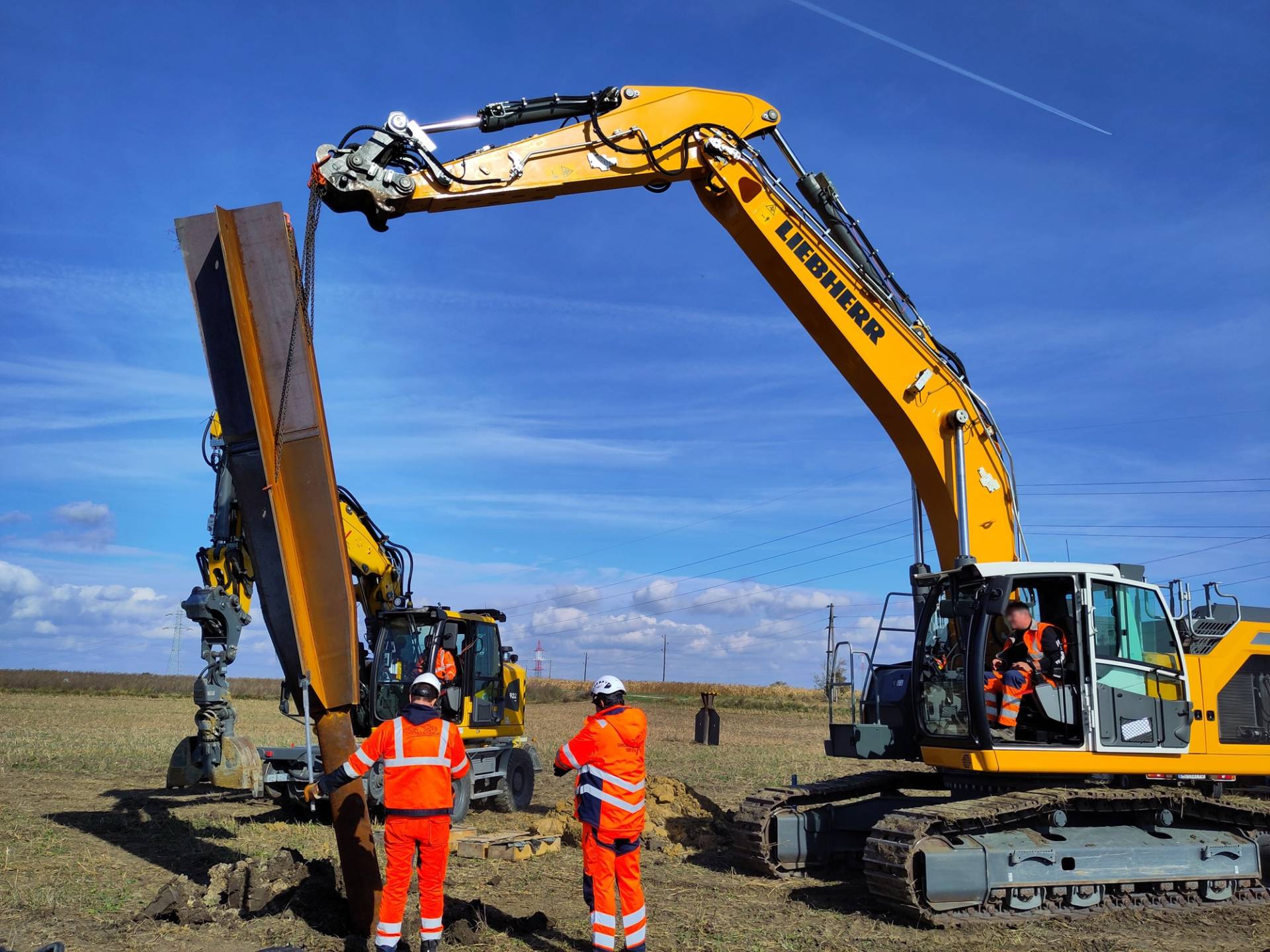 De funderingselementen worden op een tijdbesparende en zeer efficiënte manier door trillingen in de grond “gevibreerd”.